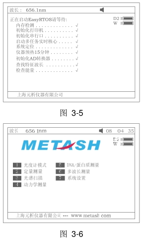 5.4 如果内存中数据已丢失,仪器将直接查找氘灯特征峰656.1nm,校准波长并测量系统基线;