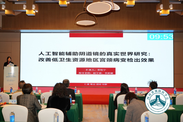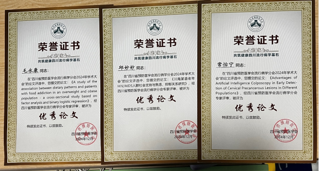 2023级邱妙妙的论文《川南某县HIV/AIDS人群社会支持与焦虑、抑郁关系研究》、毛永康的论文《A Study of the Association Between Dietary Patterns and Patients with Food Addiction in an Overweight and Obese Population: A Cross-Sectional Study Based on Factor Analysis and Binary Logistic Regression》和常怡宁的论文《Advantages of Artificial Intelligence Colposcopy in Early Detection of Cervical Precancerous Lesions in Different Populations》等3篇文章入选会议优秀论文。其中常怡宁在青年学者环节做了汇报分享。
